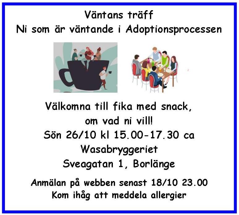Ni som är väntande i adoptionsprocessen. Välkomna till fika med snack, om vad ni vill!