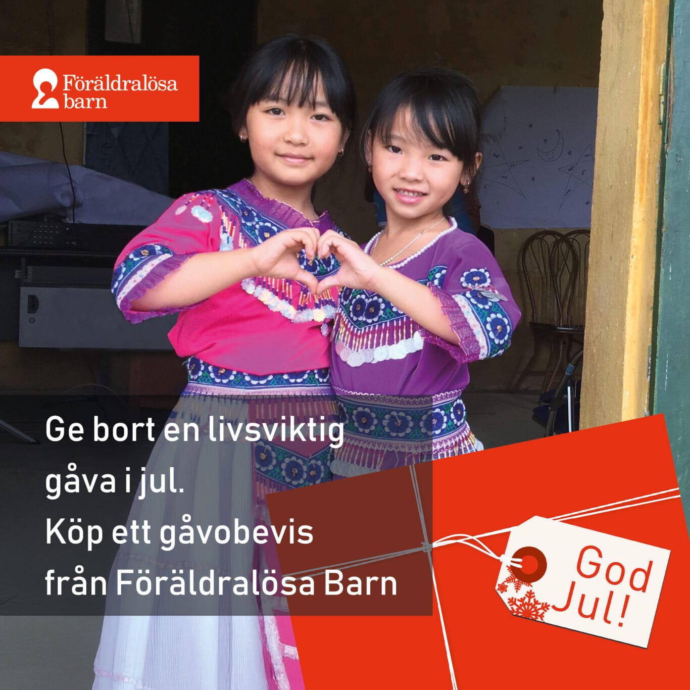 Ett gåvobevis från Föräldralösa Barn är betydelsefullt både för dig som köper det, för den du ger det till och för alla de barn som får växa upp med trygghet och kärlek. Gåvobeviset går att köpa hela vägen fram till julafton.