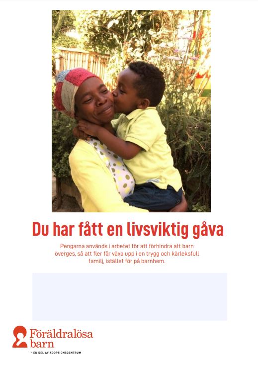 Glöm inte att betala in din gåva till vårt BG 900-9895. Märk inbetalningen med ”Gåvobevis” och ditt namn eller swisha till 900 9895