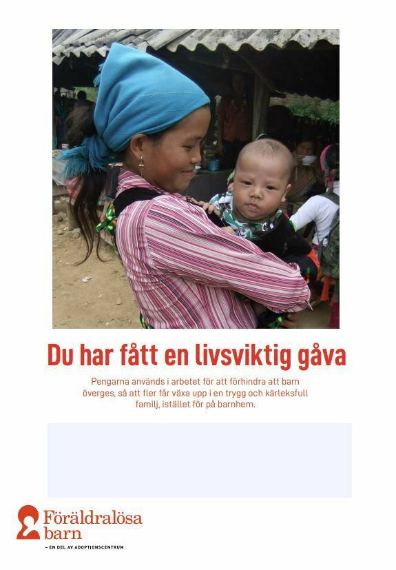 Behöver du hjälp att skriva ut och skicka ditt kort, skicka oss en e-post på info@foraldralosabarn.se och skriv din personliga hälsning och adressen till den vi ska skicka kortet till.